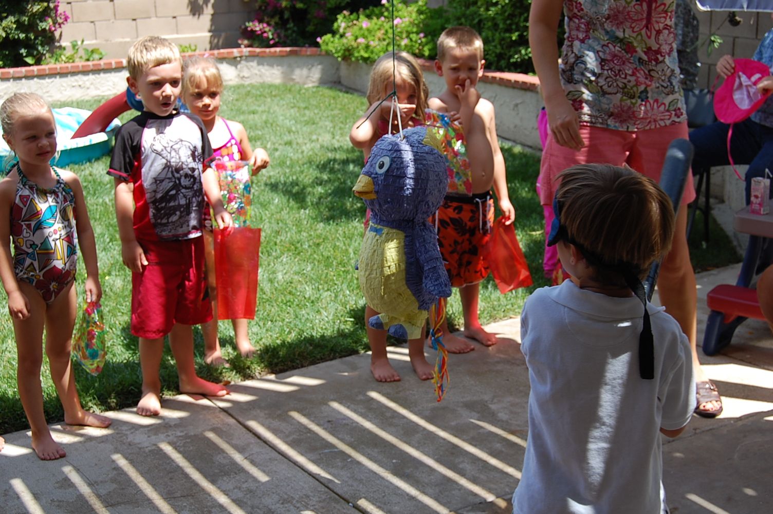 Lots of pics and lots of fun. It took a while to get the hang of the slip and slide but once they did-they loved it. After eating some lunch there was a balloon toss game and Nicole won it. Justin was inside playing with toys. Then it was pinata time. They loved trying to hit the pinata, it was really cute. I am sure they will be talking about how Pablo’s head fell off.