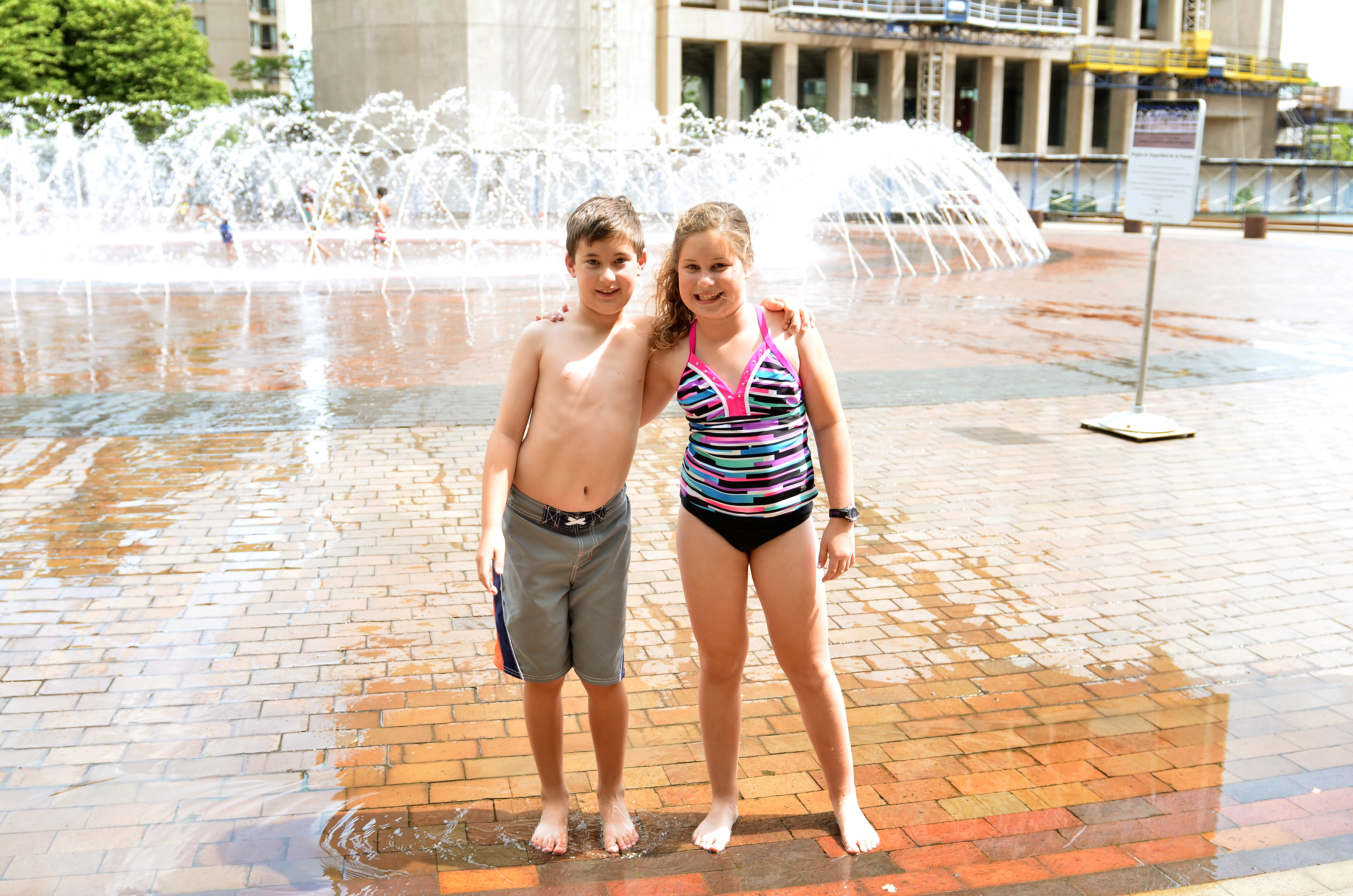 I remember first telling Bret about bowling with small balls and he was like what??? While Bret was at the conference the kids and I went candlepin pin. It was funny to see the kids bowl this way. They had a good time. The bowling ally was only about 20 miles from Boston but it took so long to get there. You just don’t pop on a freeway and go, like here. We made a day out of it.We went bowling then to a kids play place that had a zip line, rope swings, gymnastics mats, every type of ball. I thought the kids would be bored after a short time but they had a great time. We basically had the place to ourselves which made it even better. Then we went to meet some old high school friends for dinner. It has been 25 years and so crazy to catch up with these people. I let the kids have their ipads the entire time so I could chat away. I was a little hesitant at first for some weird reason but I was glad I went. By our hotel was a huge fountain the kids could play in. One night the kids and I ran through it with our clothes on just to be silly. Just going through it once I was soaked and freezing. Anyway we went over to the fountain another day with bathing suits. The kids had fun but Justin got a little cold. Nikki did not want to get out. Here is a pic from before going in the fountain and after: